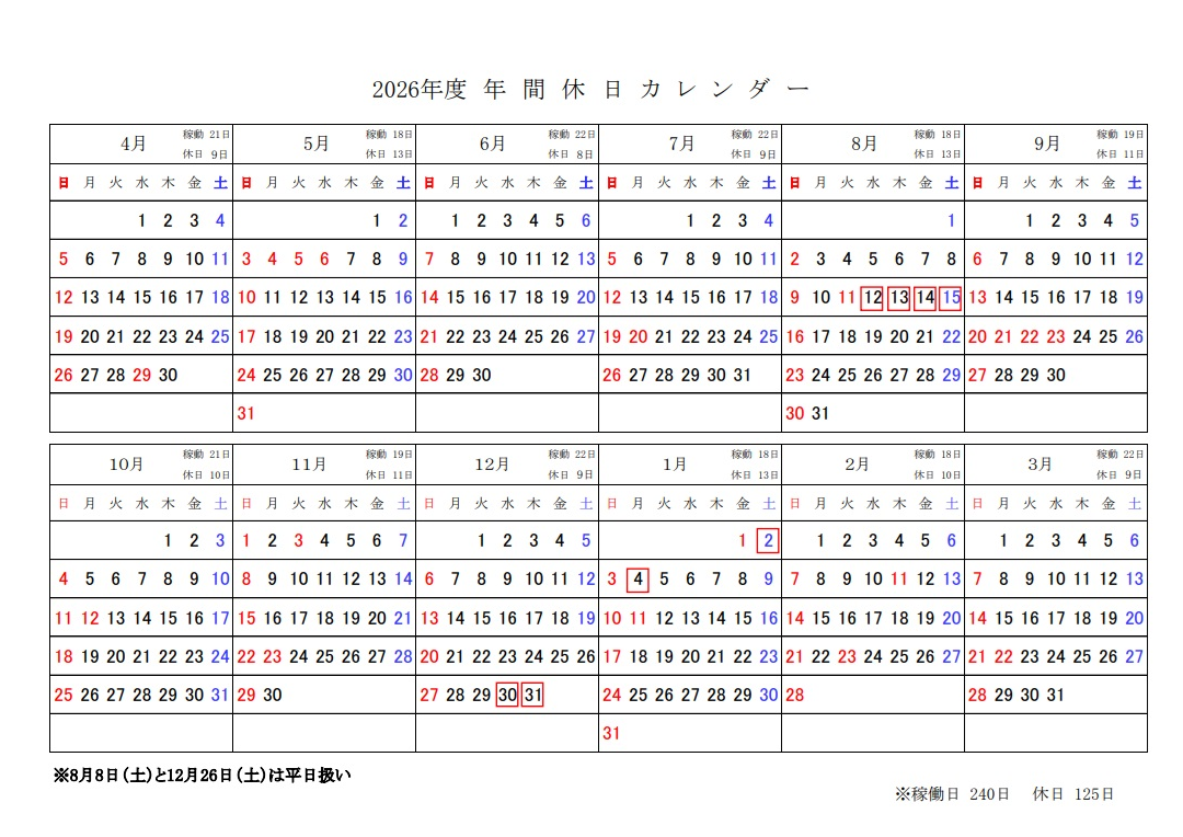 夏季・年末年始